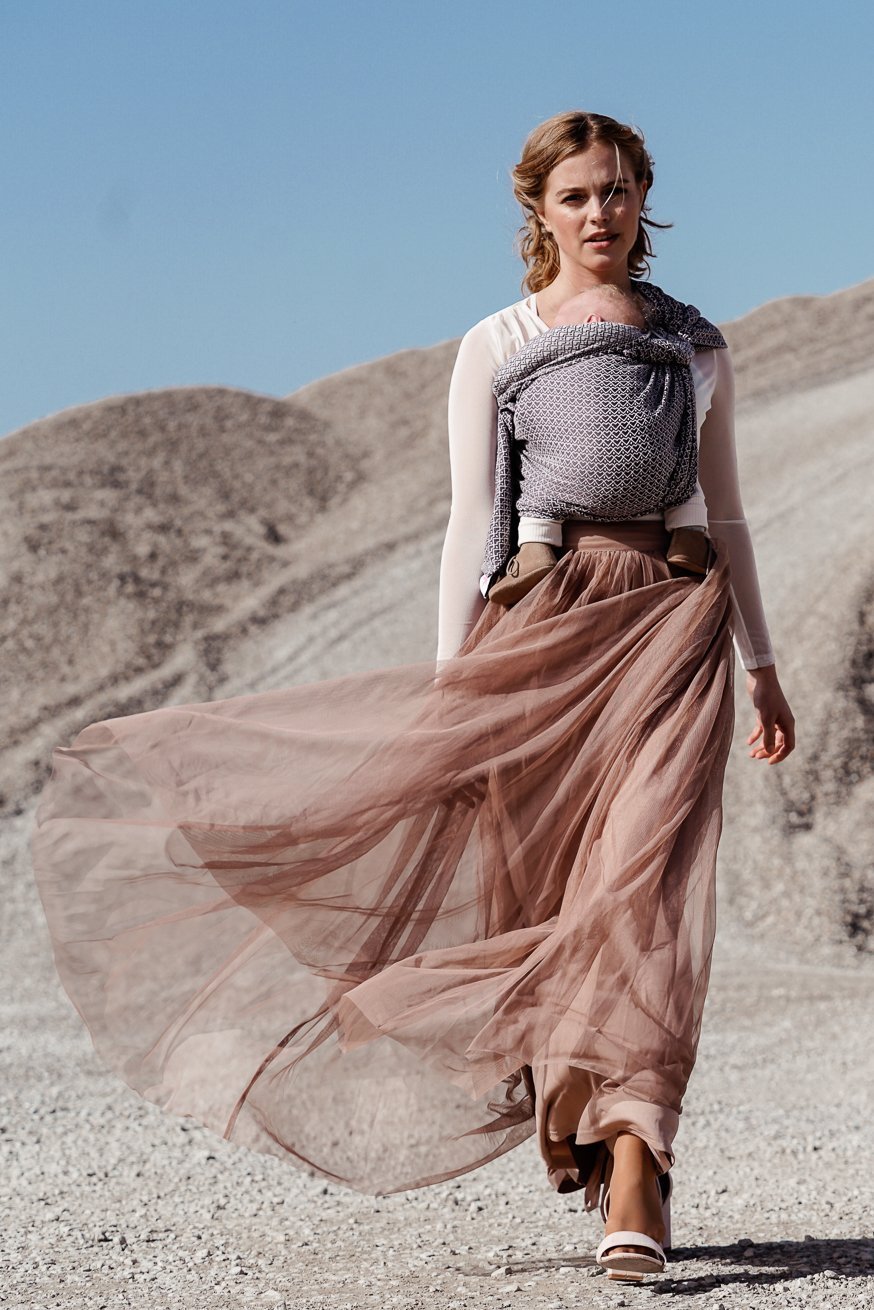 100% easy care organic cotton and the best jacquard weave make this unique KOKADI babywrap a beautiful and gentle babywearing dream come true for your little one and yourself. Due to the basis weight of 170 g/m², our KOKADI Heart2Heart Stone is perfectly suitable for very small and light babies. That way you can already wear your newborn lovingly cuddled up to you and enjoy beautiful bonding moments.