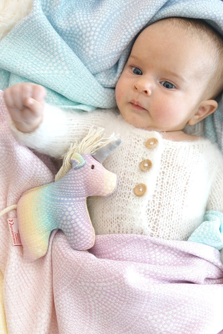 The unicorn is suitable for children from 0 months and a special gift for birth or as a small gift for the next baby visit.