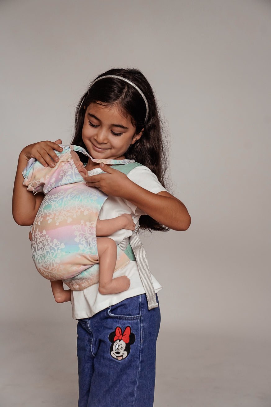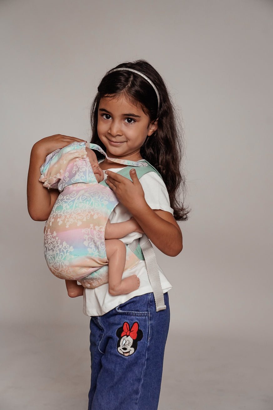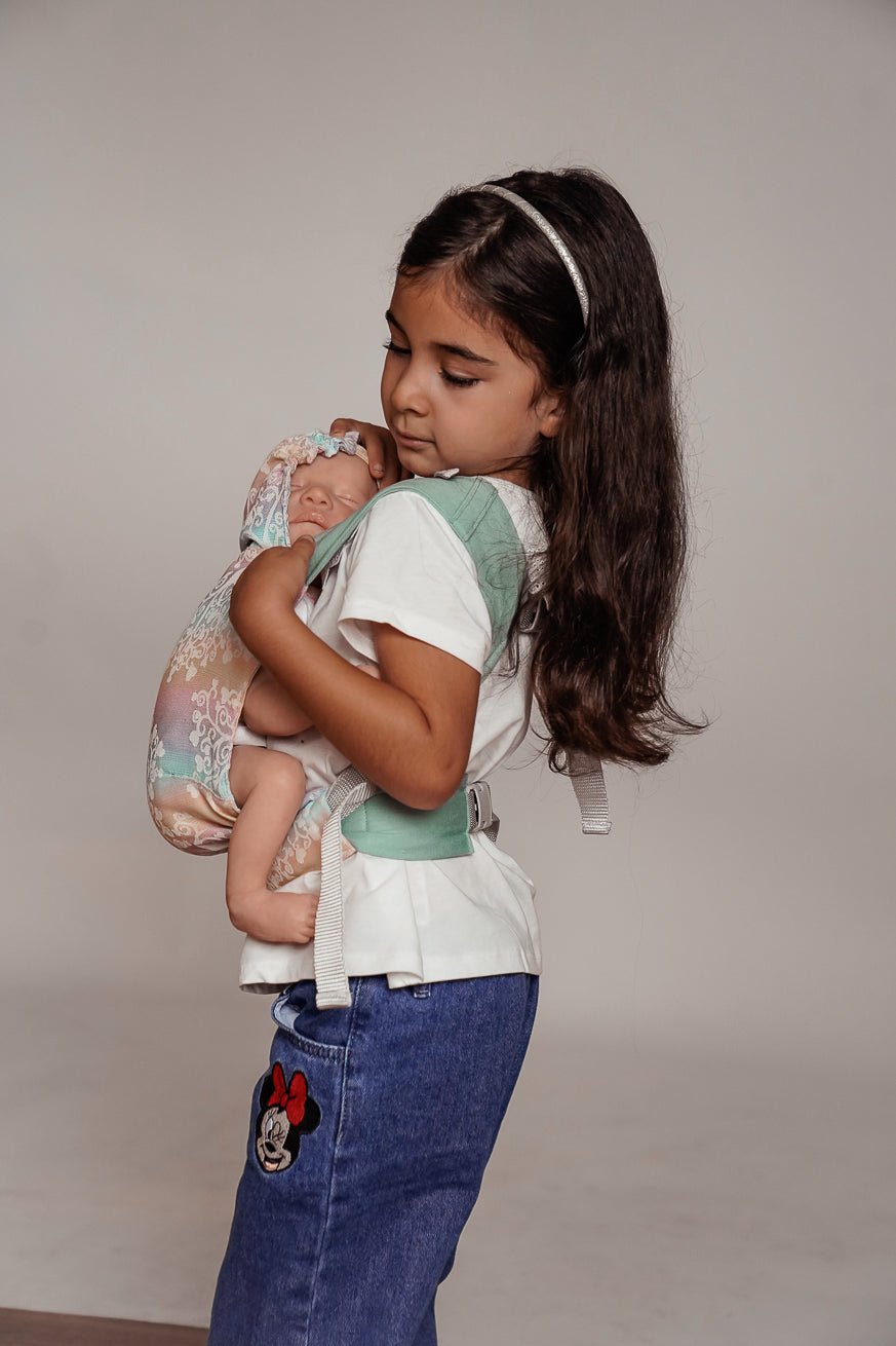 The KOKADI MiniFlip is a detailed doll carrying aid that is in no way inferior to the larger one and is therefore ideal for doll and teddy parents.