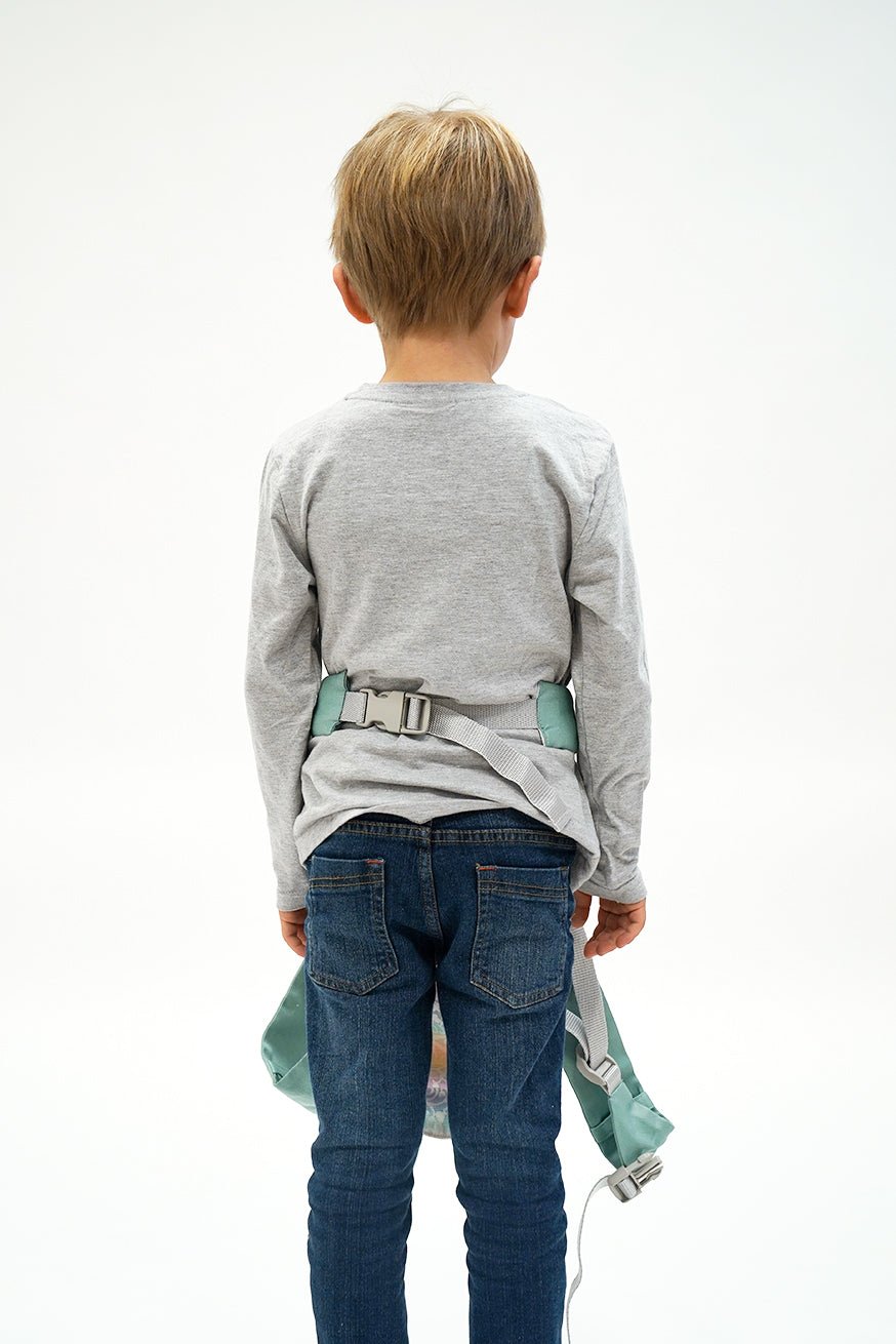 Like all of our babywearing products, the back panel is made from woven babywearing fabric. The waist belt of the MiniFlip is like the Flip the big one adjustable. The bridge width can be easily adjusted on the MiniFlip.