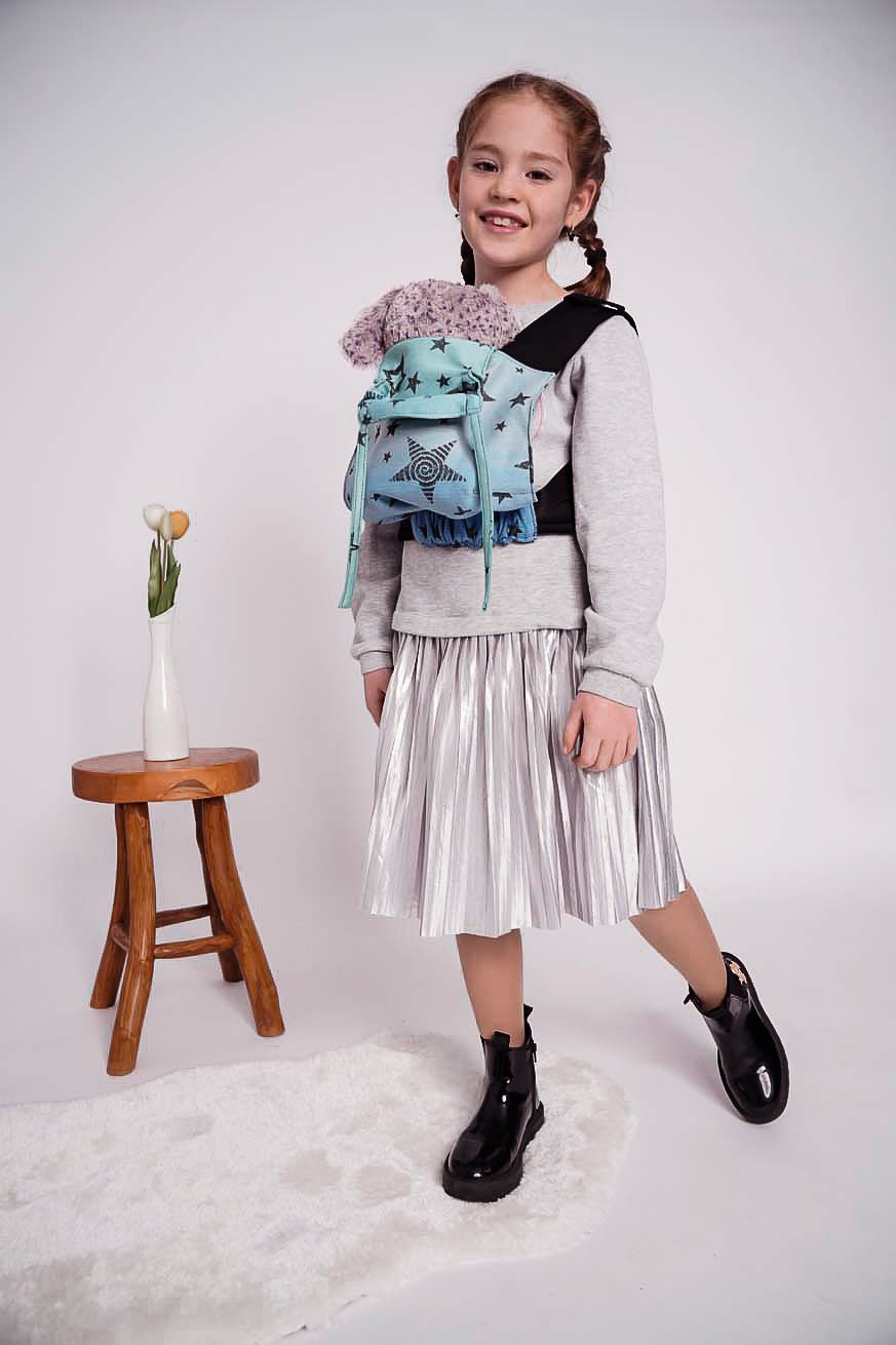The doll carrier is great. Very beautiful, high quality and like the “real” one Baby Carrier from mom. This way the daughter can carry her doll when mom carries her little brother.