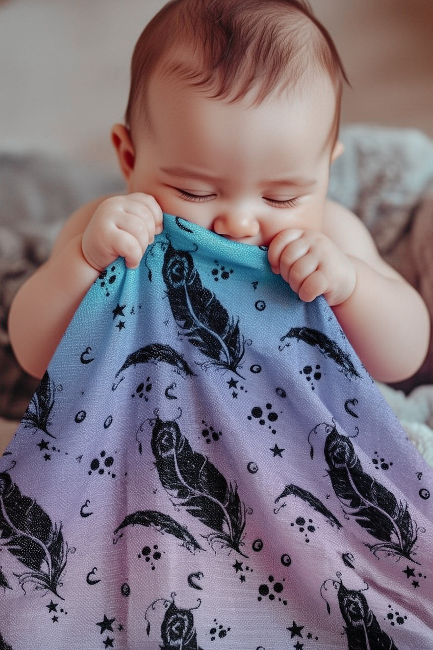 Our muslin cuddle cloths are more than just spit-up cloths. Incredibly soft and with particularly strong colors, they fascinate your baby's eyes and are also suitable as a cuddle or neck cloth. Rolled up in the Baby Wrap or RingSling you can also use them as a neck support for your baby.