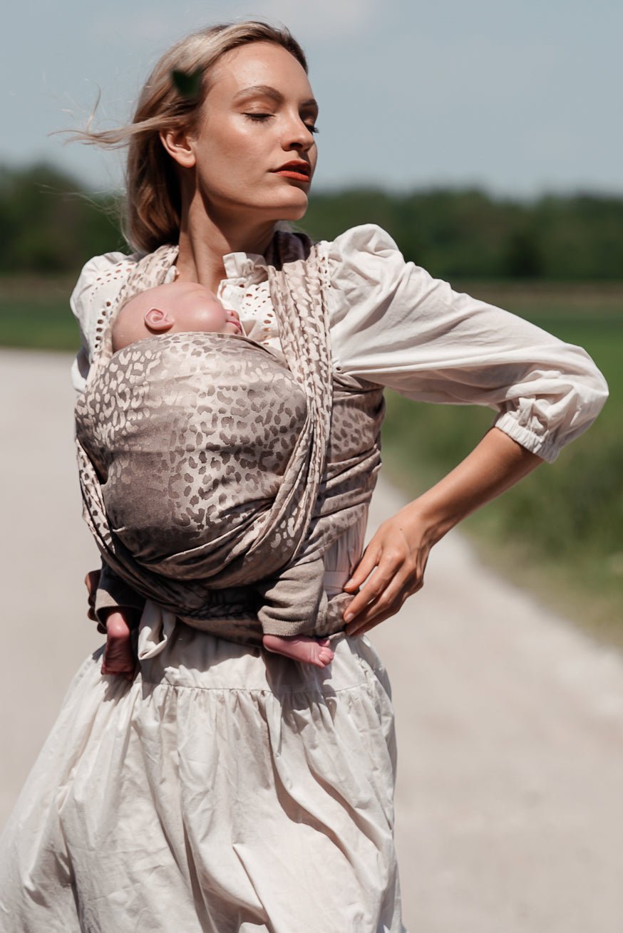 Pamper yourself and your baby with this dream now! The KOKADI baby wrap Safari Eleni in modern animal print and timeless beige is made of high quality materials and guarantees you and your baby ultimate comfort. The KOKADI Safari Eleni baby wrap is made of breathable micromodal and bamboo viscose, which are extra soft to the touch and protect your baby\'s skin. In addition, the bamboo viscose and micromodal give the sling that distinctive sheen!