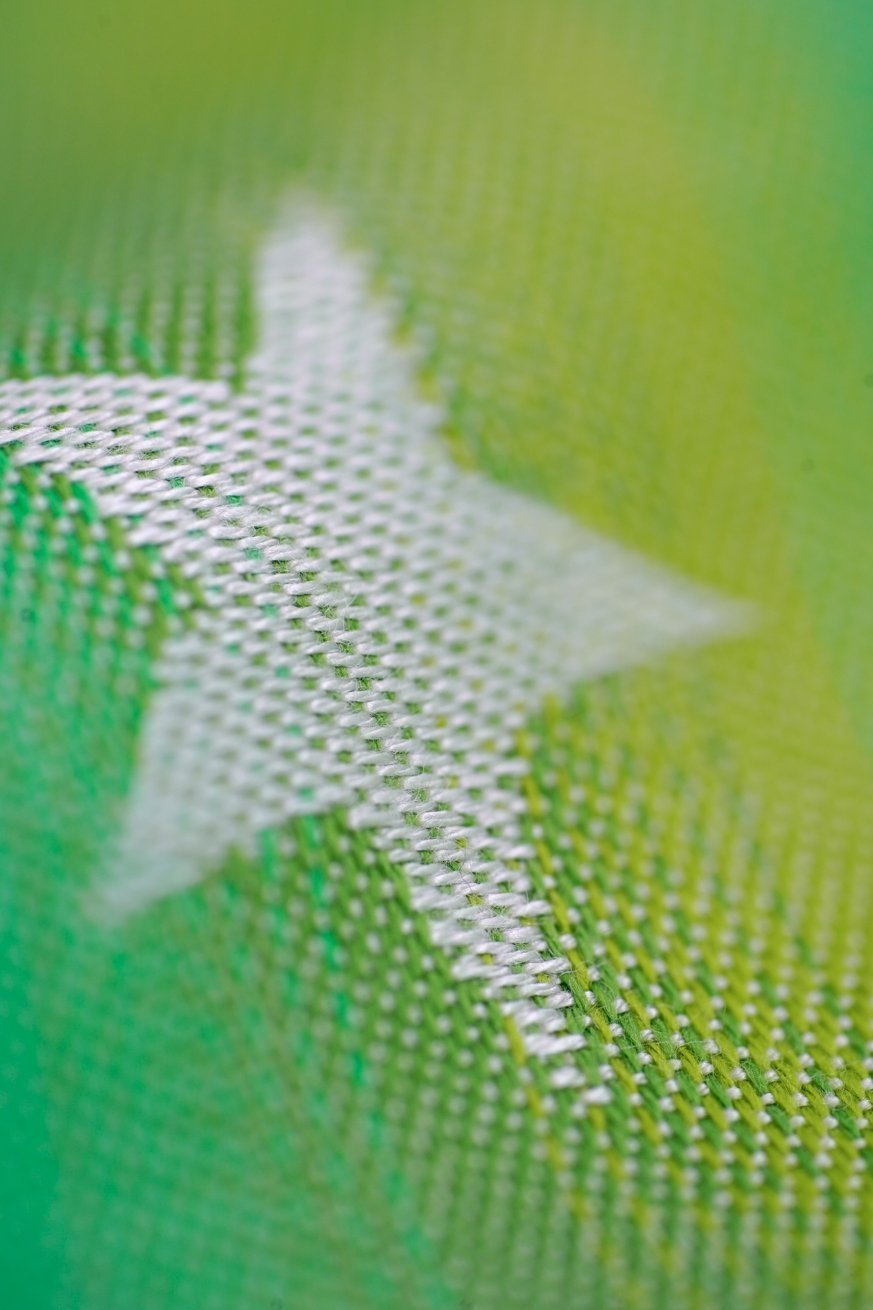 Nice smooth fabric with enough grip. Bright green that yellow is luckily not as extreme as in some pictures but rather a green yellow it harmonizes beautiful.